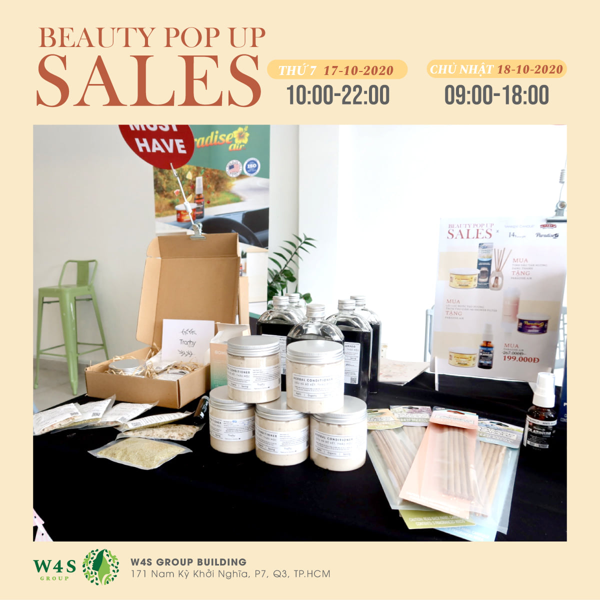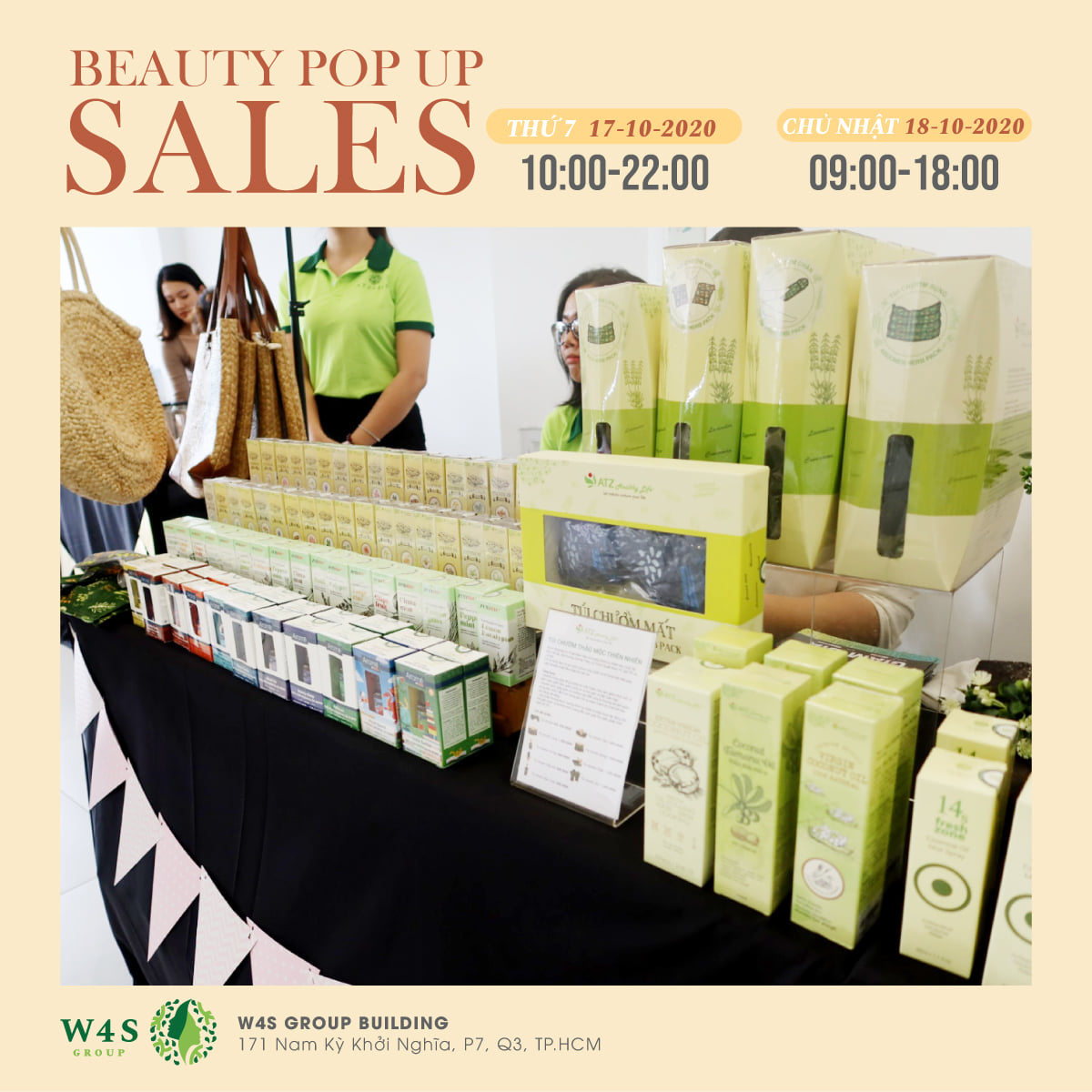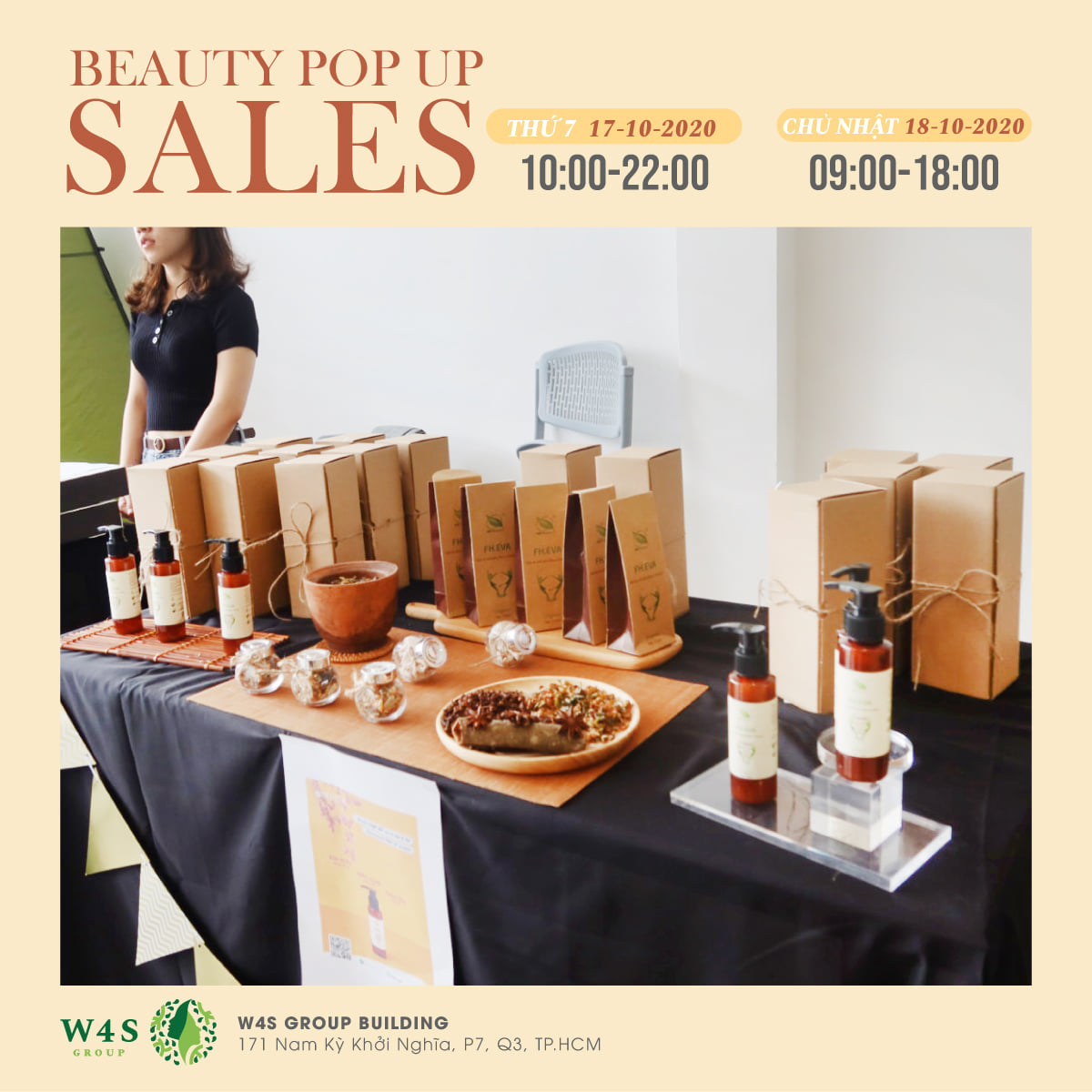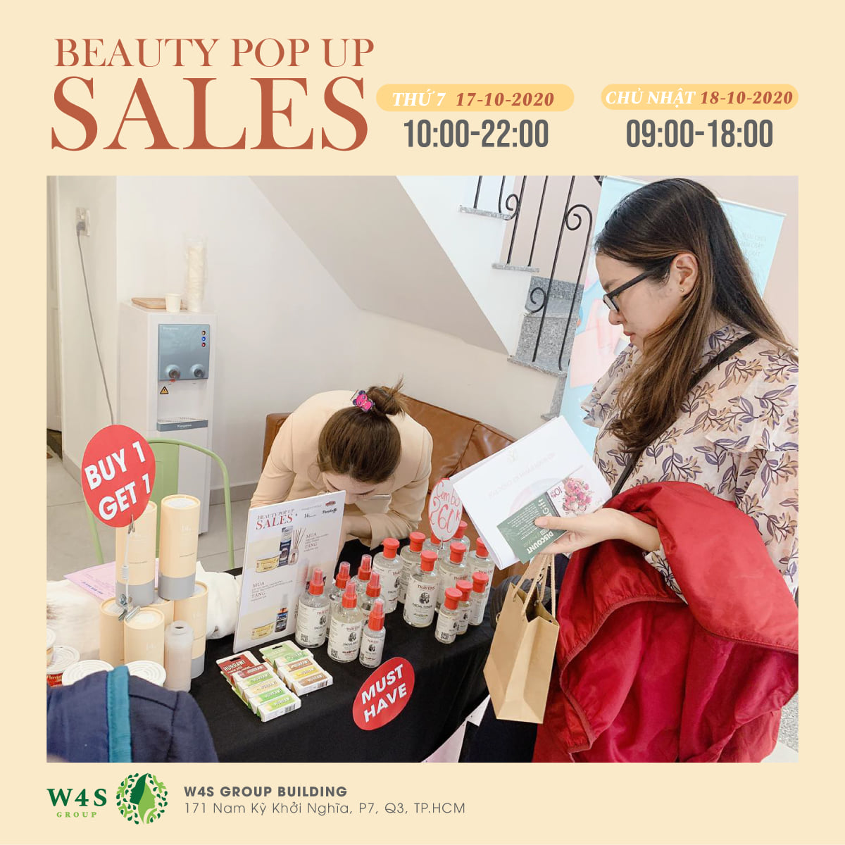 Với mong muốn tạo ra không gian lý tưởng để mang đến những sản phẩm và trải nghiệm mua sắm tốt nhất cho cộng đồng làm đẹp, W4S Group tổ chức sự kiện BEAUTY POPUP SALES diễn ra trong 2 ngày 17 - 18/10.