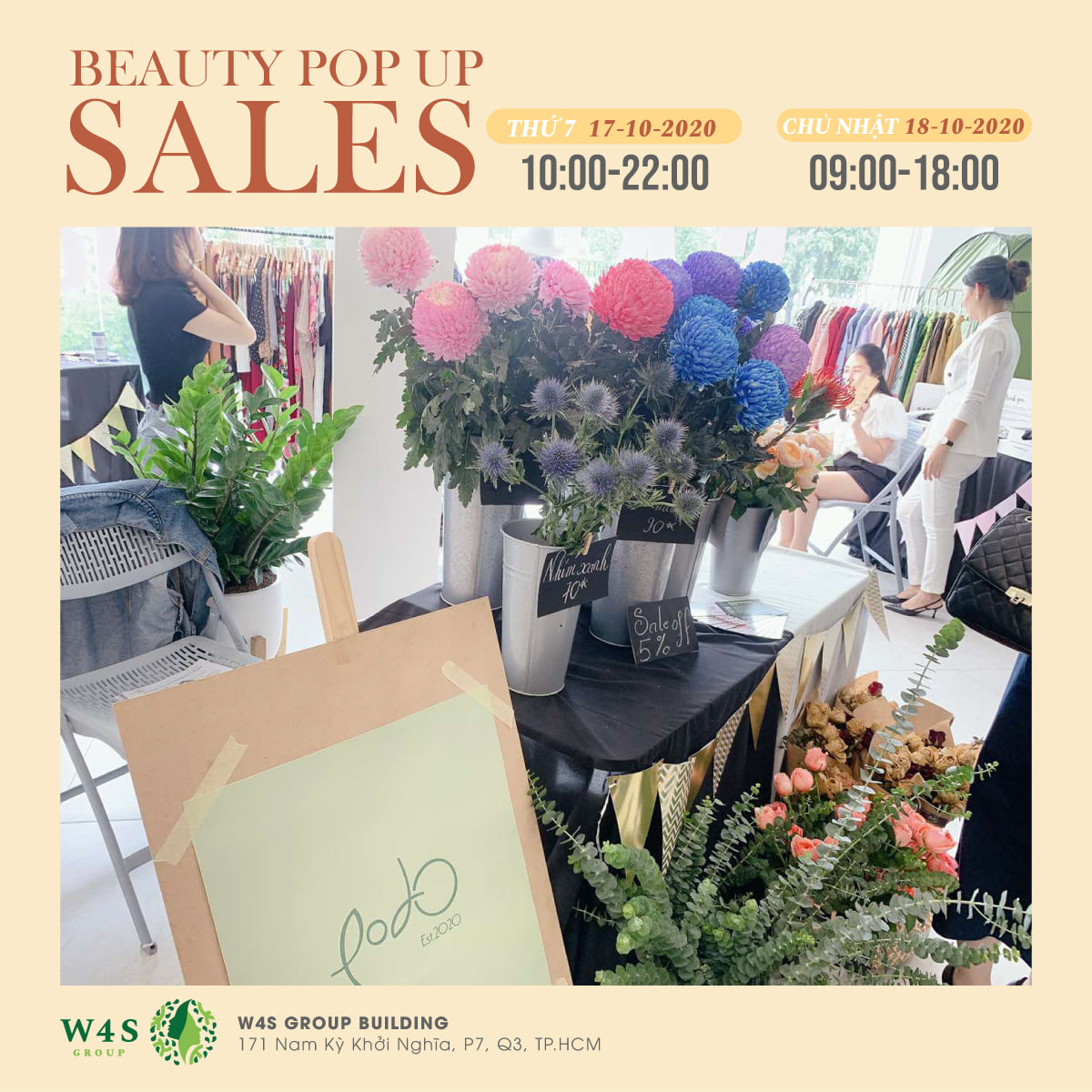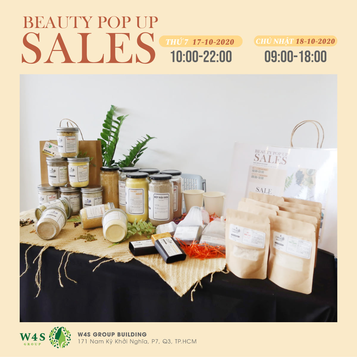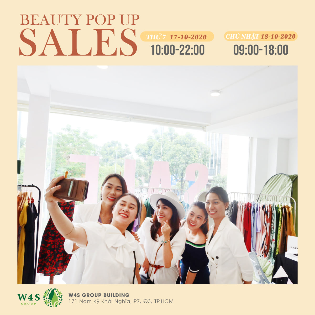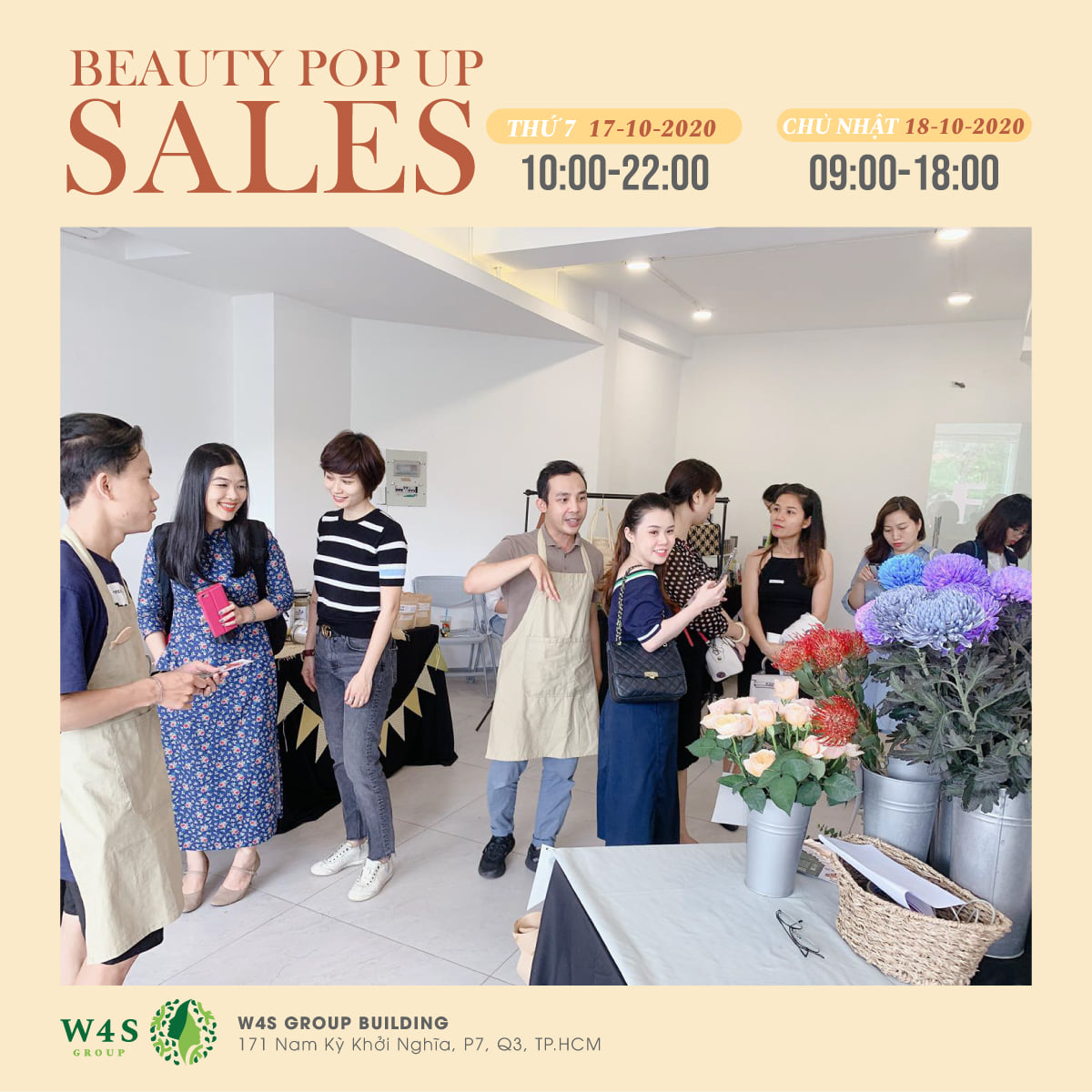 Với mong muốn tạo ra không gian lý tưởng để mang đến những sản phẩm và trải nghiệm mua sắm tốt nhất cho cộng đồng làm đẹp, W4S Group tổ chức sự kiện BEAUTY POPUP SALES diễn ra trong 2 ngày 17 - 18/10.