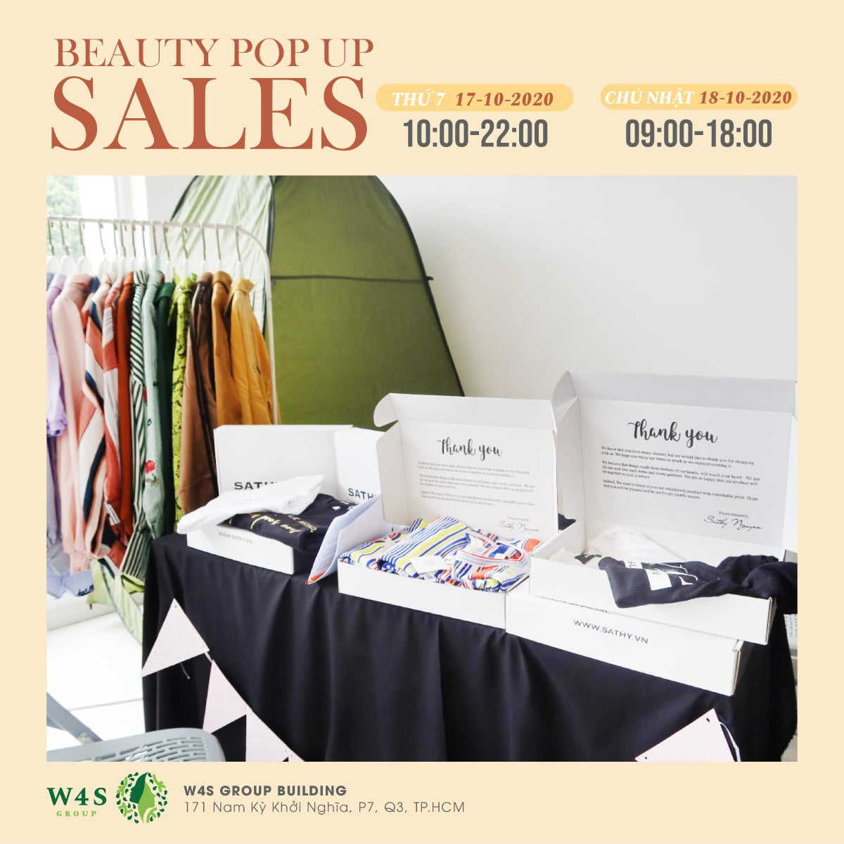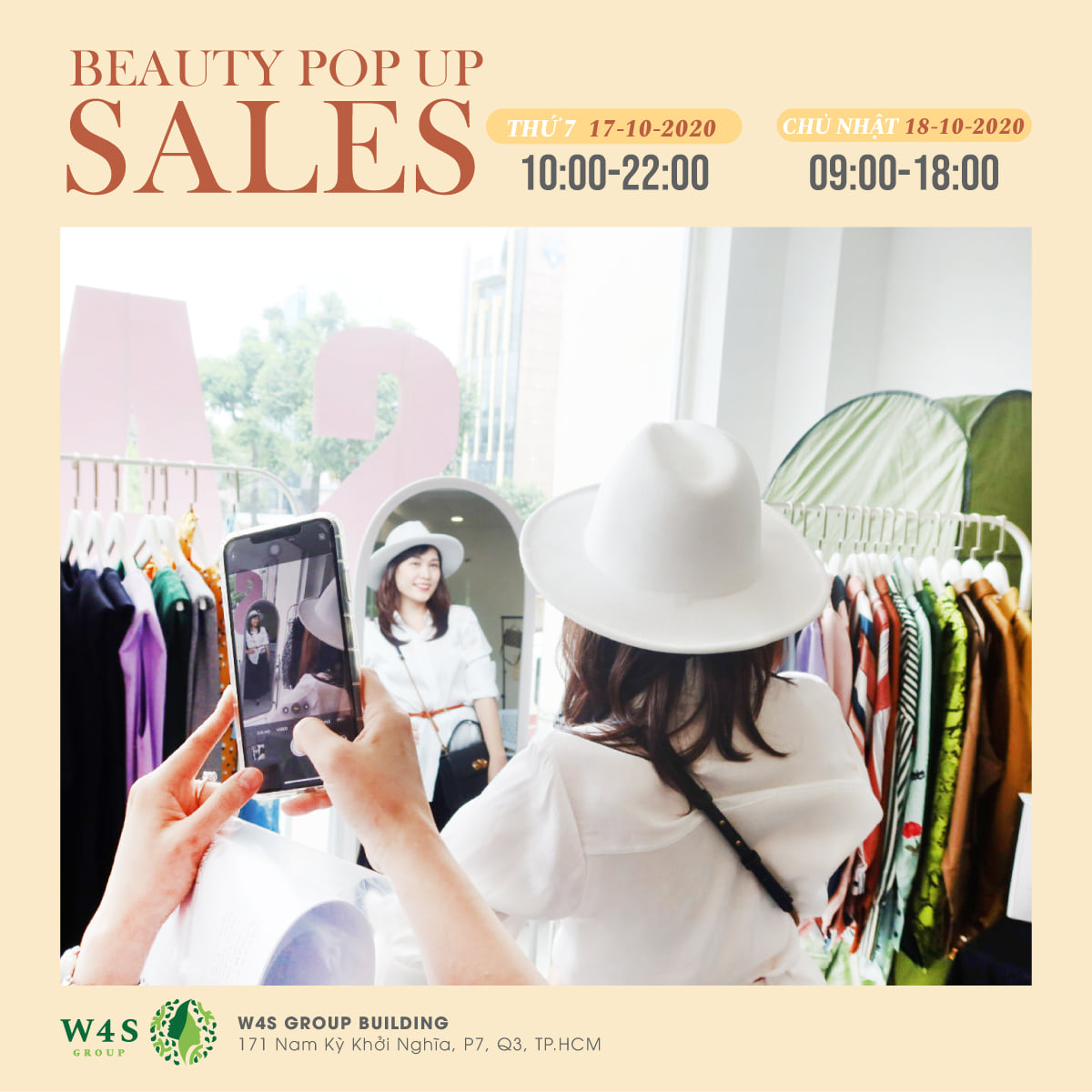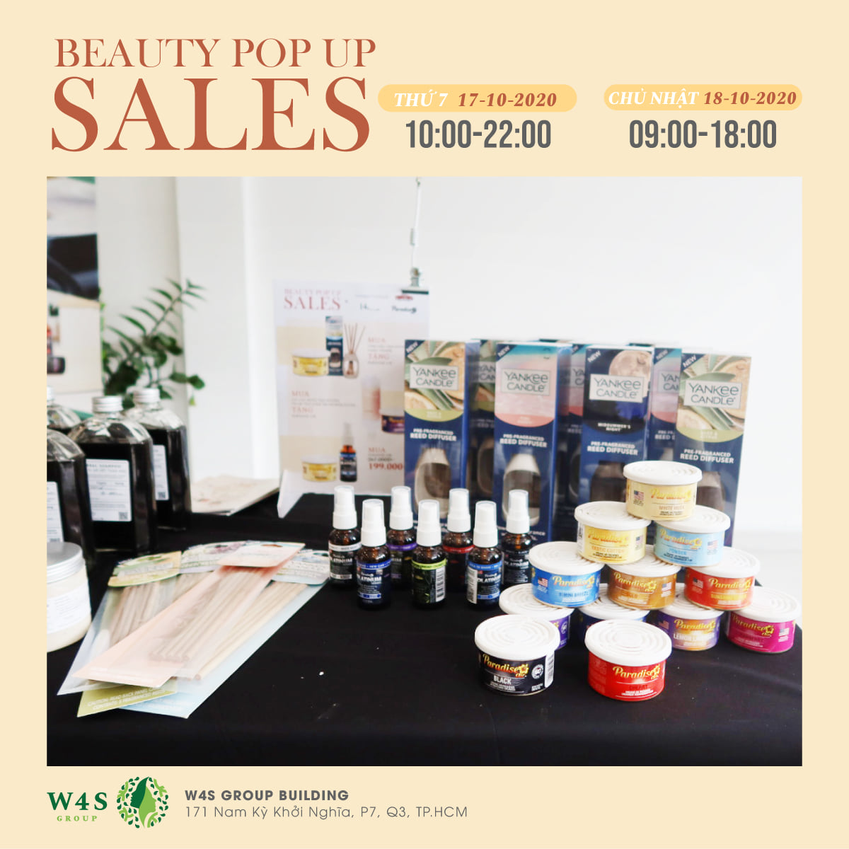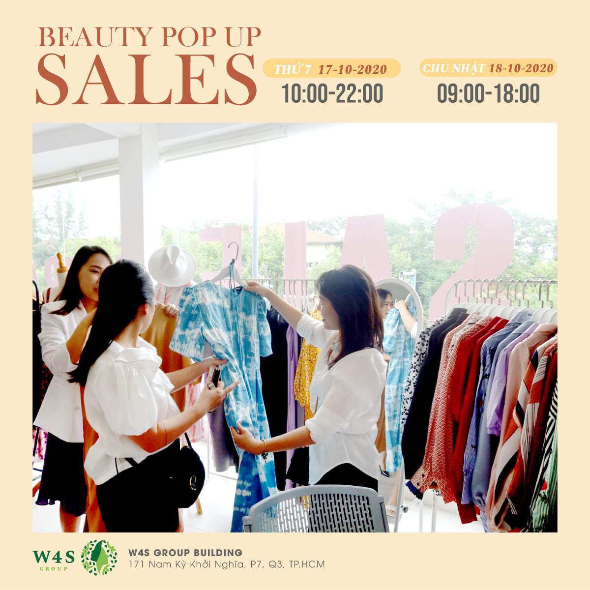 Với mong muốn tạo ra không gian lý tưởng để mang đến những sản phẩm và trải nghiệm mua sắm tốt nhất cho cộng đồng làm đẹp, W4S Group tổ chức sự kiện BEAUTY POPUP SALES diễn ra trong 2 ngày 17 - 18/10.